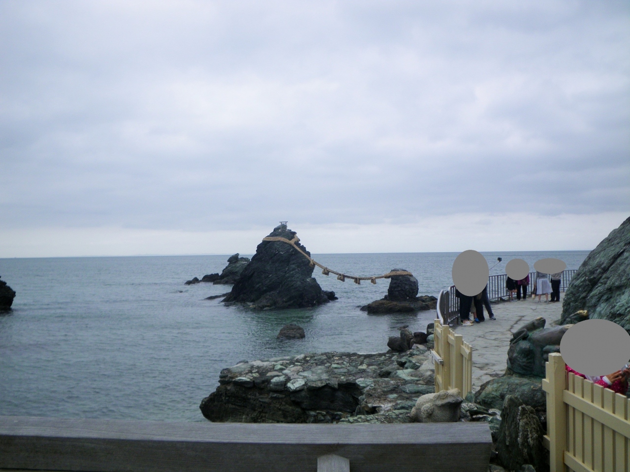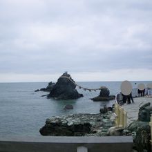 縁結びのシンボルである夫婦岩。二つの岩は長さ35m、重さ40?の大注連縄で太くかたく結ばれていて、写真で見た通りの景色がありました。ふたつの岩の間から見える朝日は夏至の前後、10〜1月は満月の月の出が見ることができるそう。ベストシーズンに再訪してみたいです。