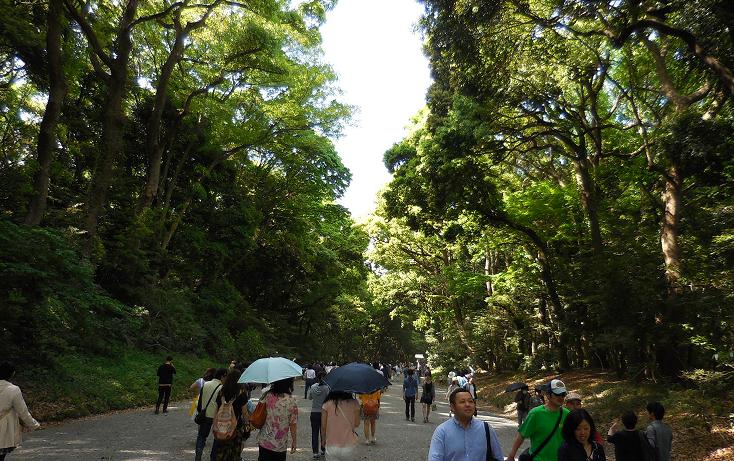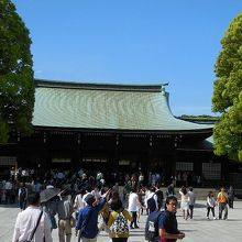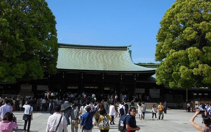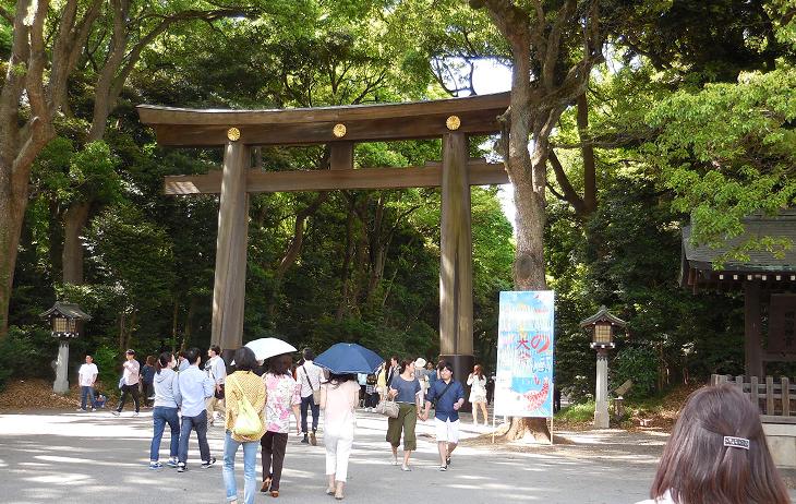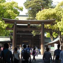 人がごった返す原宿駅方面から大鳥居をくぐり、木々が生い茂る広々とした参道を進みます。二の鳥居、三の鳥居を通ると拝殿の手前に「夫婦楠」があります。神聖な場所を歩むだけでもご利益がありそうな最強なパワースポットです。都心なのに鳥の声が聞こえるくらいの静けさが漂います。
