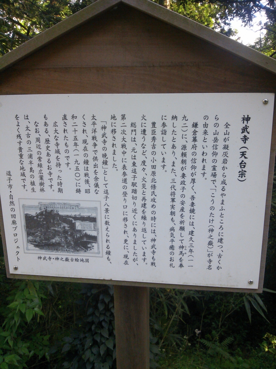 京急の駅名にもなっているお寺です。お寺自体にたどり着くには京急神武寺駅、JR東逗子駅ともに徒歩20分くらいかかります。鷹取山のハイキングコースにつながってます。山を歩くのは30分くらいです。ハイキングの安全を願って、感謝して、お賽銭を入れてきてます。