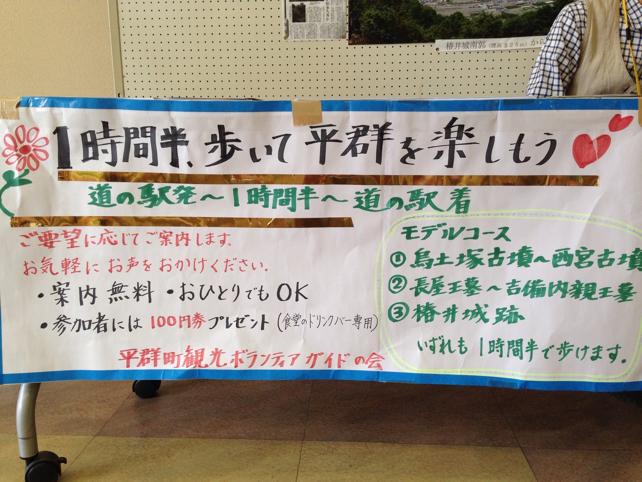 平群(へぐり)の道の駅には、無料でガイドさんと歴史ウォークが出来ます。