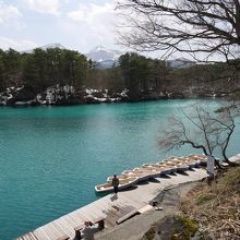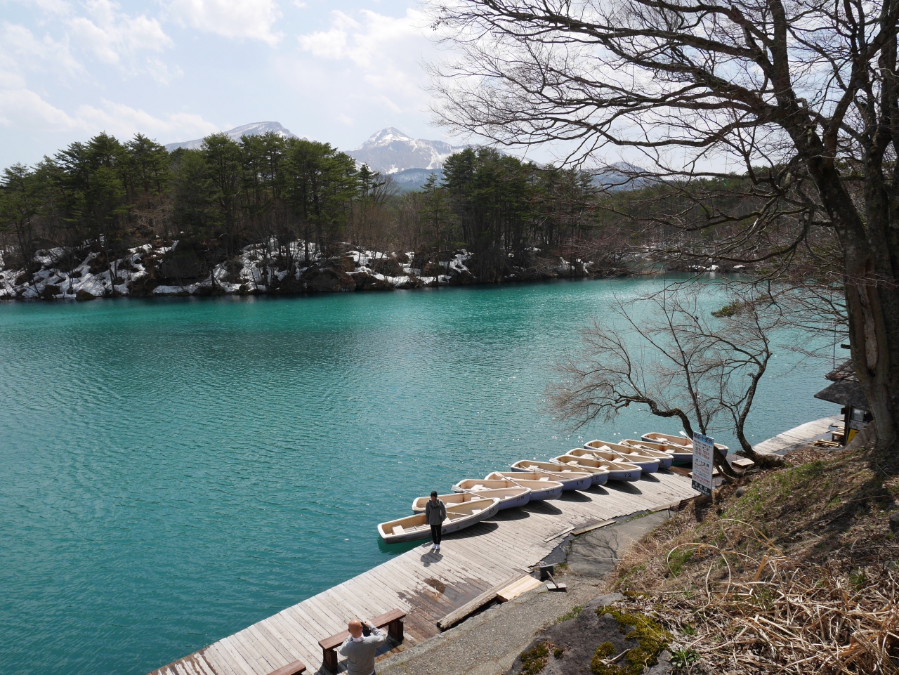 裏磐梯五色沼の中でも一番東端にあり、一番大きな沼が毘沙門沼です。ビジターセンターから歩いていける距離にあるため、ビギナーでも手軽に訪れることが出来ます。日によって見え方は違うと思いますが、ターコイズブルー色の沼の向こうに見える磐梯山が素晴らしく、心が癒されました。貸しボートがあるので、暖かい日はボートを漕いで、優雅な時間を過ごすのも良いと思います。