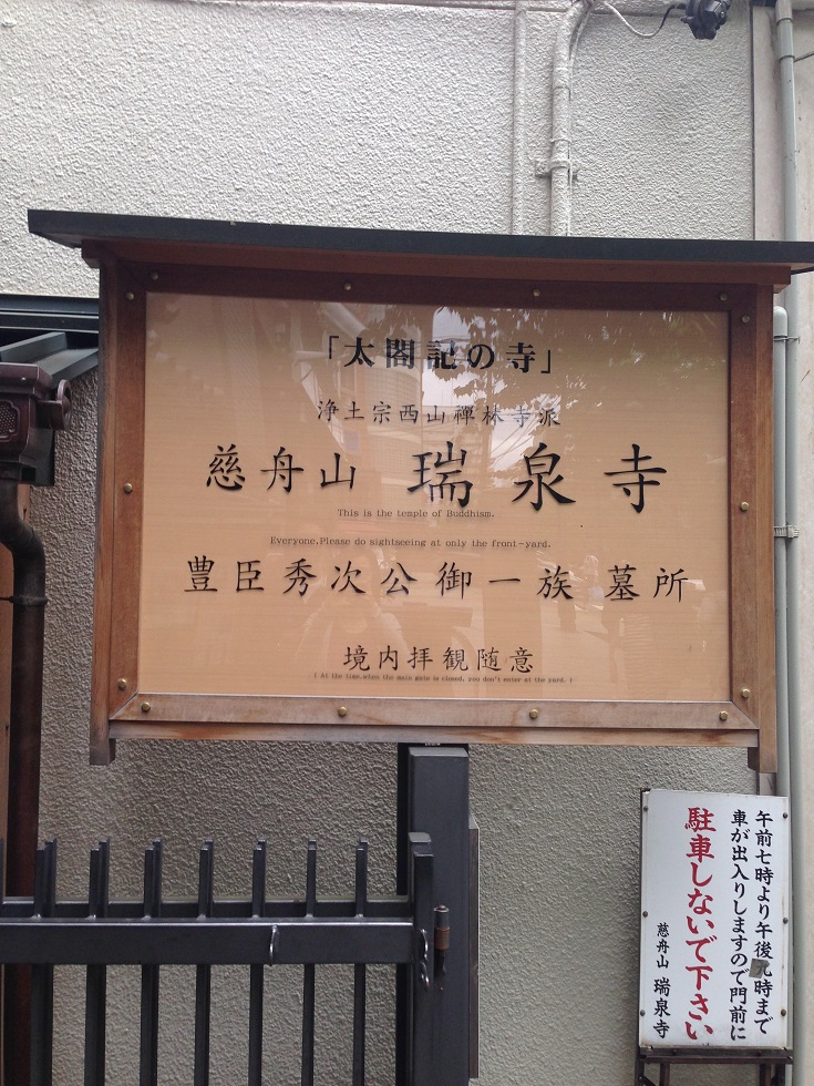 豊臣秀次を弔うお寺で、歴史が好きな方であれば、その時代背景と彼の無念さを思い両手を合わせに行くのもありだと思います。京都のざわめきの中でとても静かな場所でした。個人のお家かと思う程の広さですが、中には藤の花も咲いていて美しかったです。