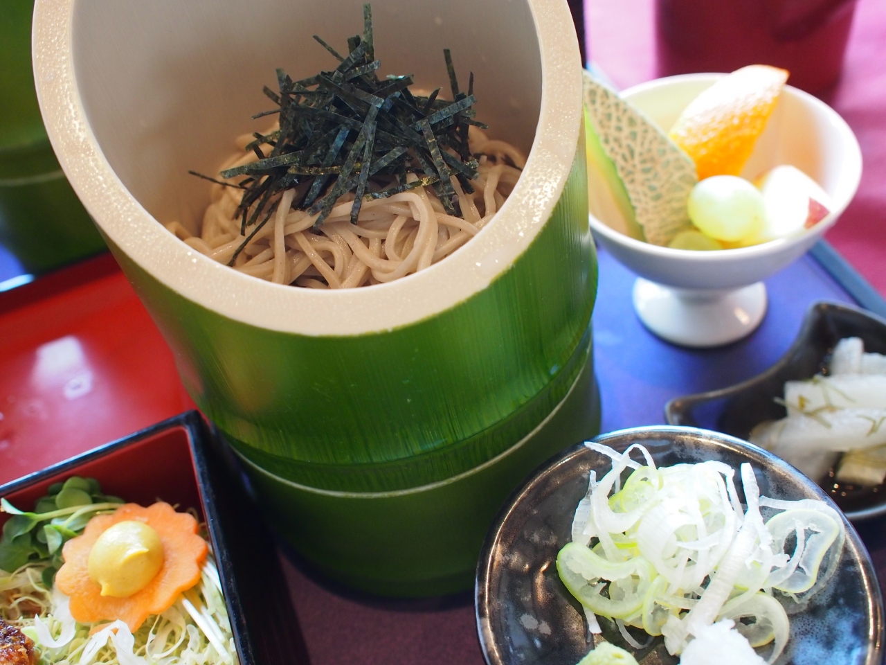 一番人気はかぐや姫御膳で、そばがかぐや姫のように竹に入って出てきます!