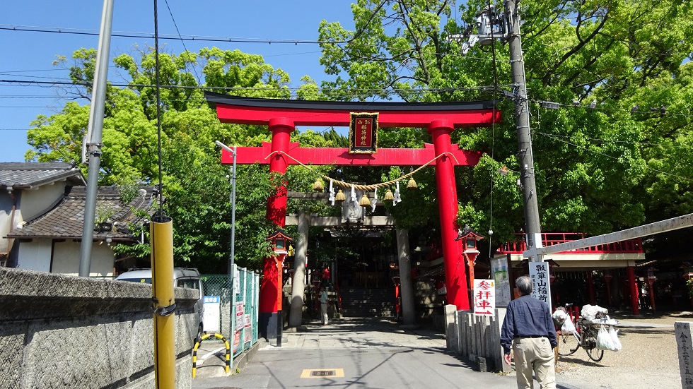 国道上にアーケードがある170号沿いにあるのが、瓢箪山稲荷神社。古墳の一部を神社に転用したというのは、よくある話っぽいですが、その神社内が付近の人の通路にもなっているという点も、非常に珍しいでしょう。神社の裏手の方は、神社を通過して通勤通学しています。辻占の名所でもあるようです。