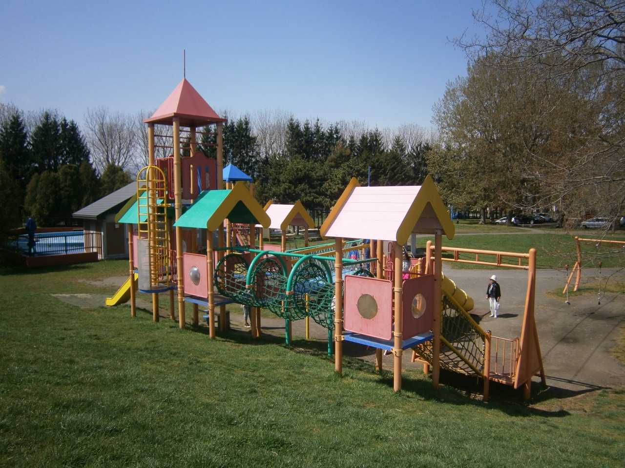 夏には屋外プールもあるようです。有料の競技場や、パークゴルフ場などもありました。コンビネーション遊具のほか、駐車場付近に、トレーニング(リフティング、腹筋、平均台)が出来る場所と、昔ながらの遊具(鉄棒やブランコなど)もありましたよ。