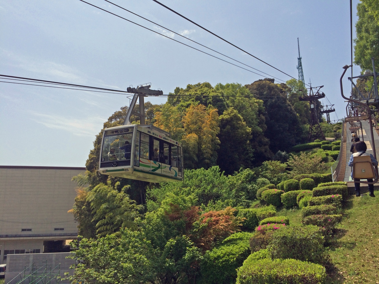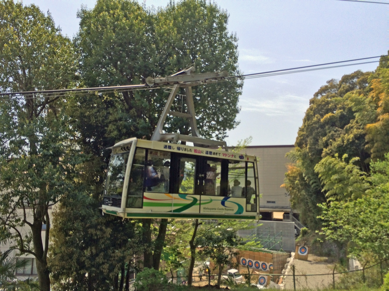 松山城見学には、歩いて山を登ることも出来ますが、多くの人は、このロープウェイか並行して走るリフトを利用すると思います。チケットはロープウェイとリフトは共通です。天気が良ければ、リフトの方が待ち時間が無く便利だと思います。