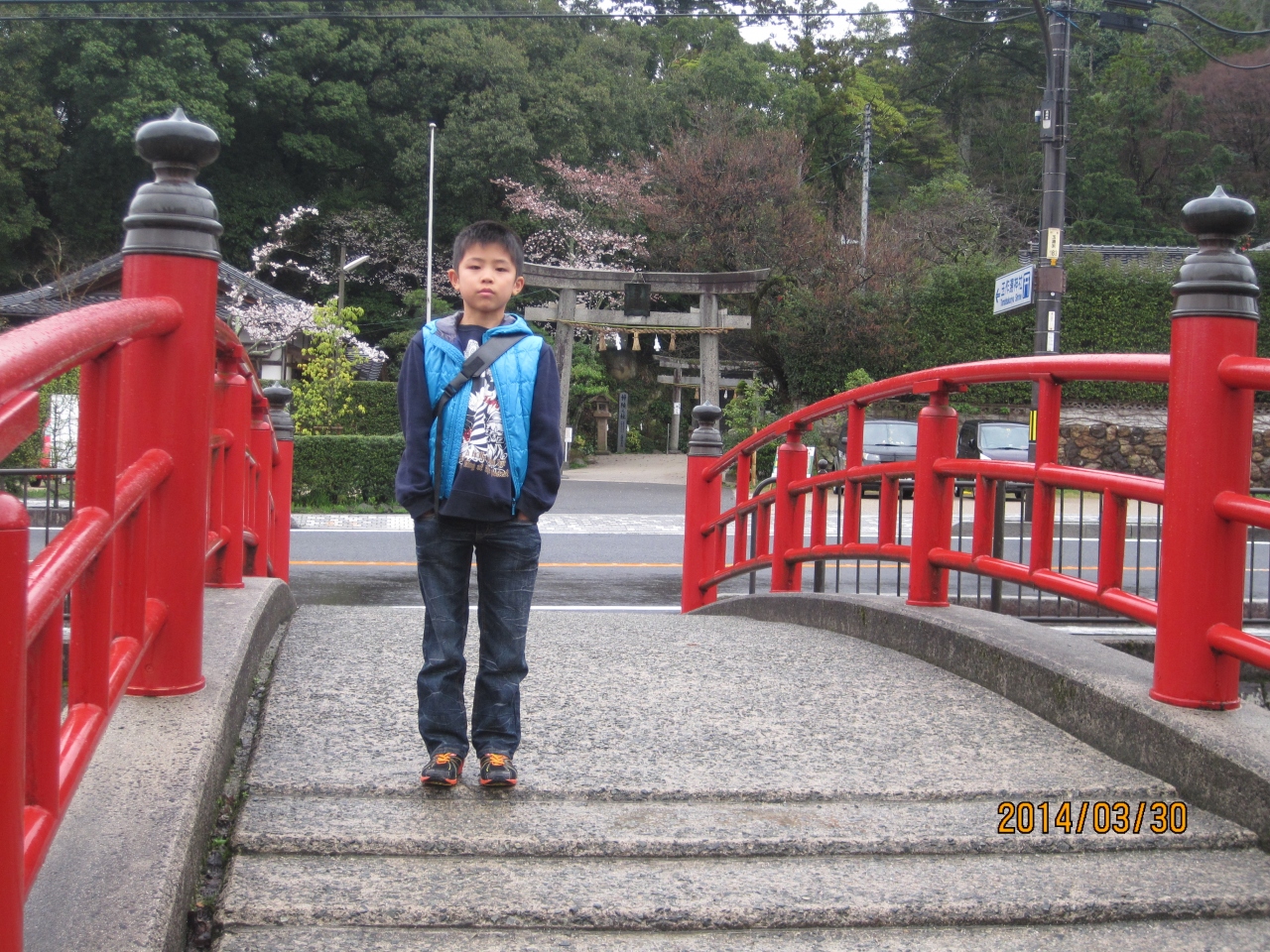 橋の上に撮影ポイント(看板)があるので、そこから取るときれいに鳥居が入るので、うまくいけば、恋がかなうということで、独身の女性には人気のあるところです。鳥居が入らなければ、かなうものも、かなわないらしいです。