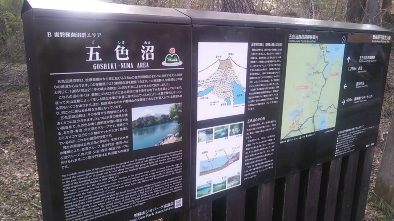 五色沼自然探勝路という遊歩道があり、まわりの湖沼の散策も楽しめます。