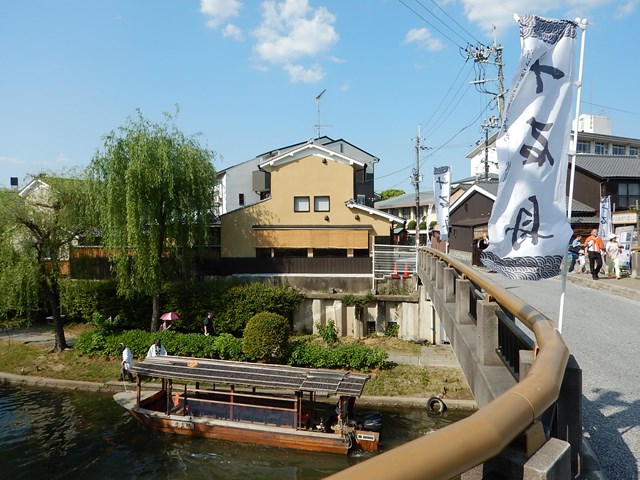 もともと、伏見は宇治川沿いにある港町で、江戸時代は伏見と大阪の水運が盛んで、その時に使われていたのが十石舟、三十石舟です。