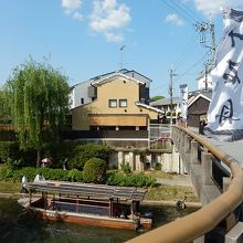 伏見の川べりに十石舟、三十石舟の乗り場があります。