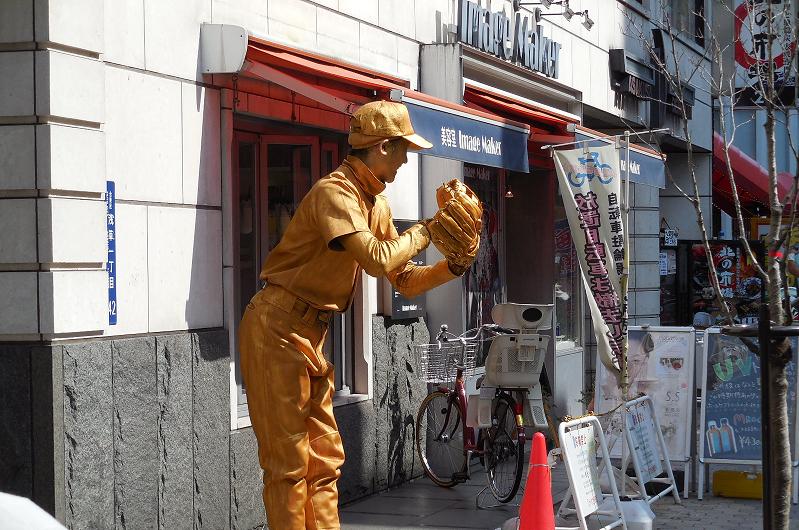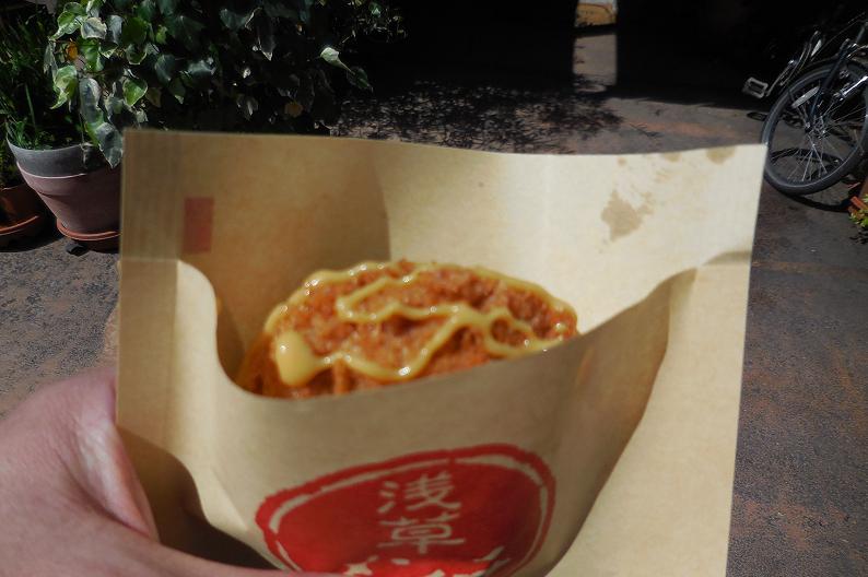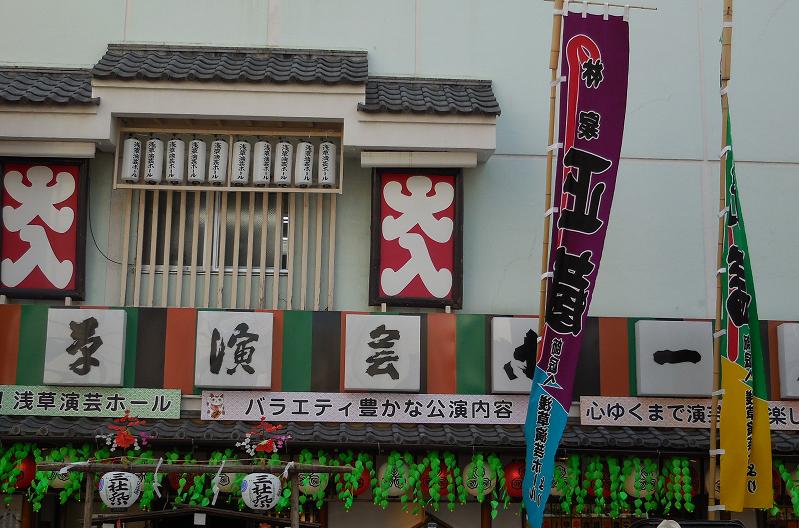 仲見世通りと交差する「伝法院通り」の一味違う楽しさがあります。地口行灯の洒落ことばにはニヤニヤしちゃいます。「とんで 湯に入る 夏のぶし」「板きり むすめ」笑えます。後は定番の浅草メンチ、「ふじでん」では、もんじゃを食しました。浅草演芸ホールの前では、パントマイムもやってました。