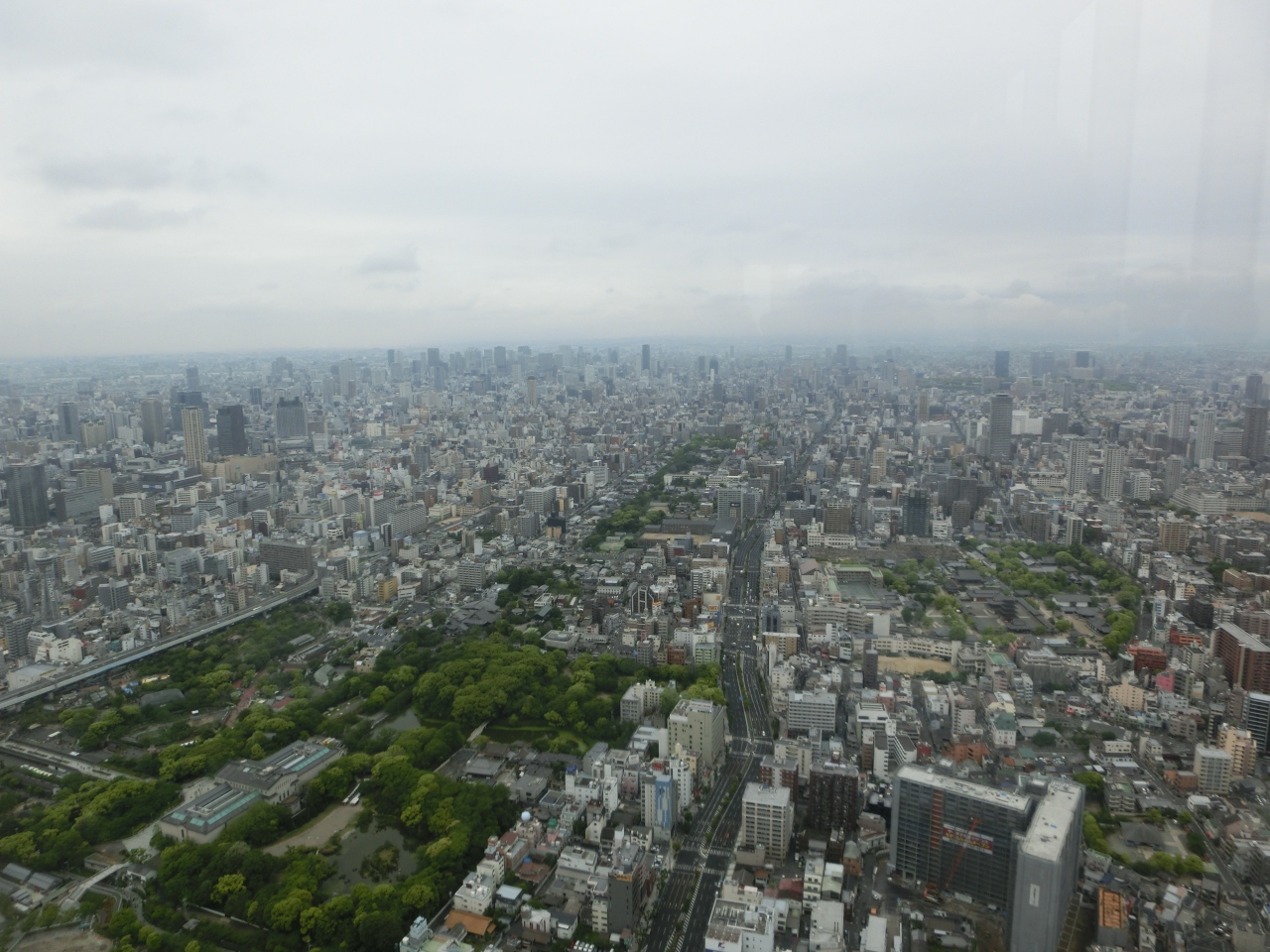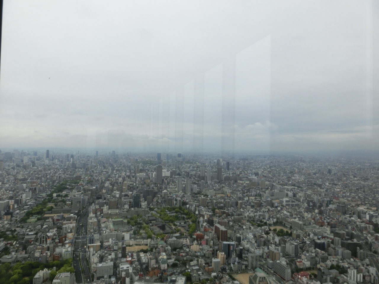16階で乗り換えて、高速エレベーターであっという間に60階でした。ここから眺める大阪の街は、まるでレゴのように小さく見えたのにはちょっと感動しました。