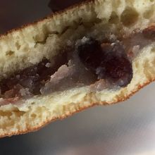 白あんの中に煮たピーナッツが入っていました。軟らかいので、ピーナッツに気づかないです。どらの生地を開いてみて、お!ピーナッツだ、という感じでした。