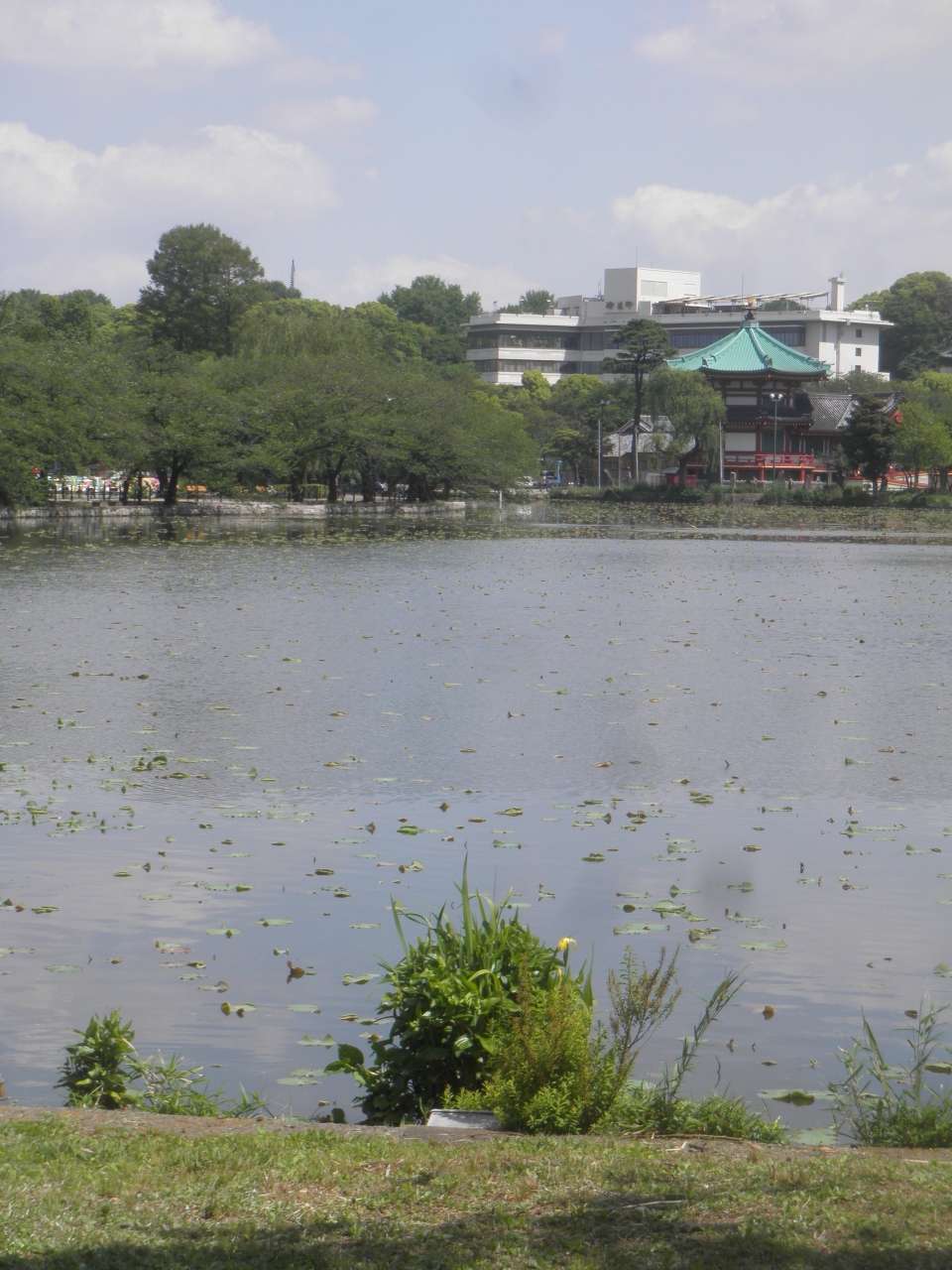 ゴールデンウィークに上野公園を散策しました。 地下鉄の湯島駅をおりて歩くとすぐに不忍池 につきました。 有名なハスはまだ成長していないようで、小さい葉がういているだけでした。 対岸に緑屋根の弁天堂が見えました。 周辺は歴史のある観光スポットが点在していて散策が楽しかったです。