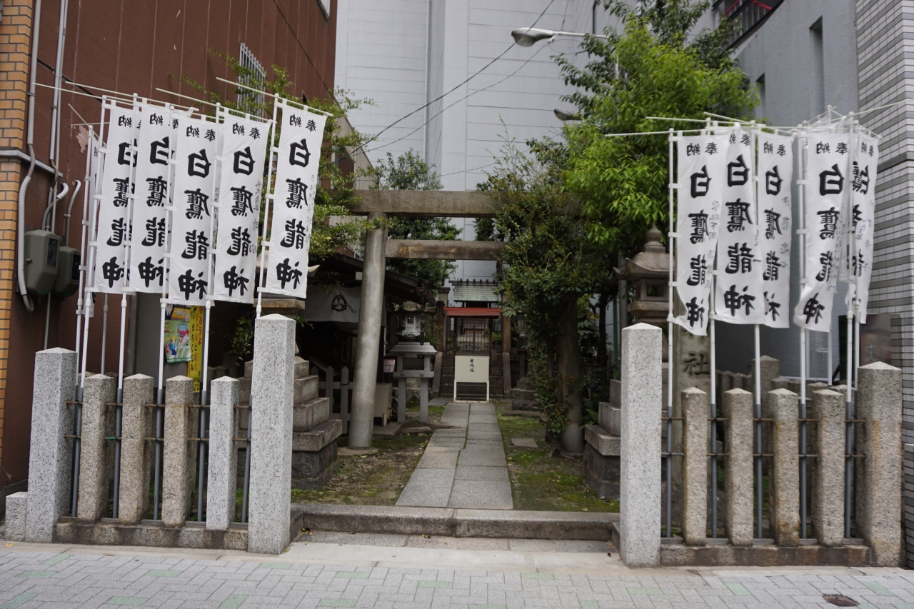 柳里神社は、都会の真ん中にある小さな神社ですが、白鷹龍神と書いた白い幟がたくさん立っていて、かなり目立っています。神社にはスサノオノミコトも祭られているようですが、ただ、白鷹龍神という意味はよくわかりません。