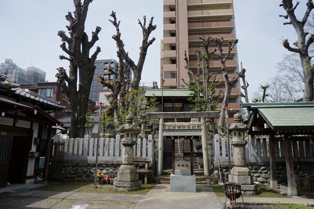 日出神社は、大須観音の周辺にある社寺の一つで、若宮大通に入口があります。入口は大したことないように思いましたが、奥は広くて、なんとこの神社の本殿は日出神社古墳跡という古墳の上に建っているんですね。周囲には銀杏の木か何かが何本かあって、面白い景観となっています。