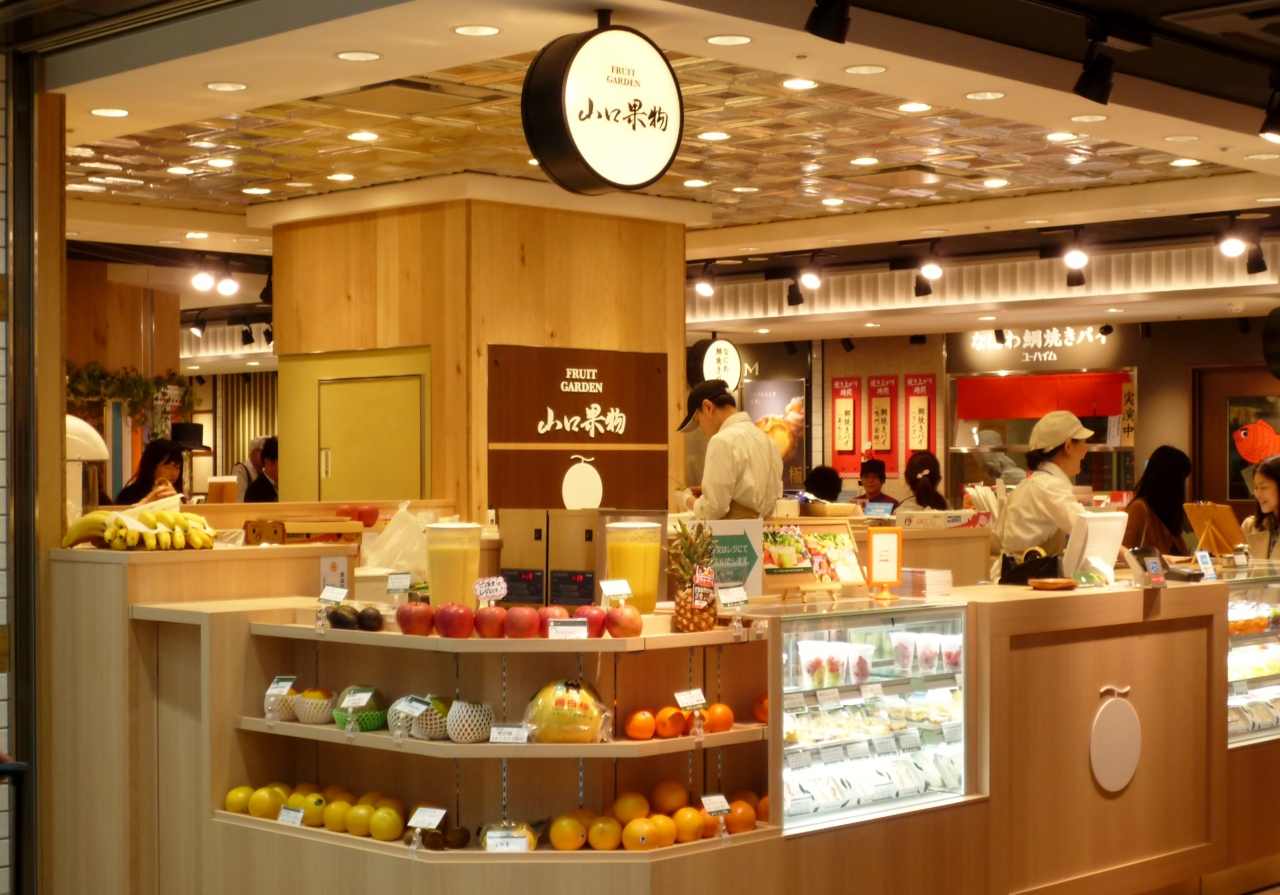 エキマルシェ内には買った物を食べられるテーブルがあるコーナーもあります。