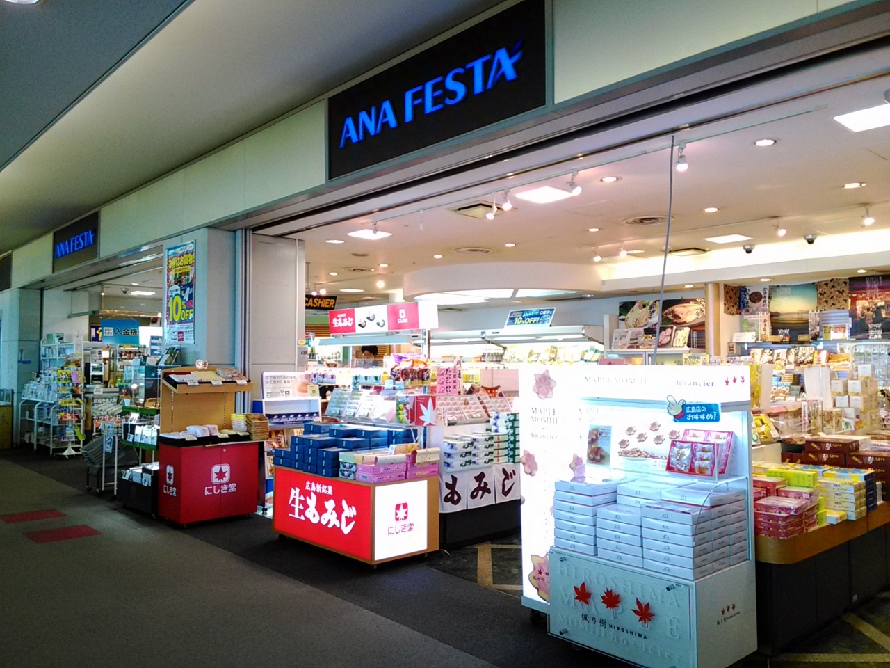 広島空港のana側の搭乗口の前にあります。私はanaのマイルをためているので、飛行機に乗る前はよく利用します。広島のみやげも一通りそろっていますし、弁当やサンドイッチ、飲み物も充実していて便利なお店だと思います。