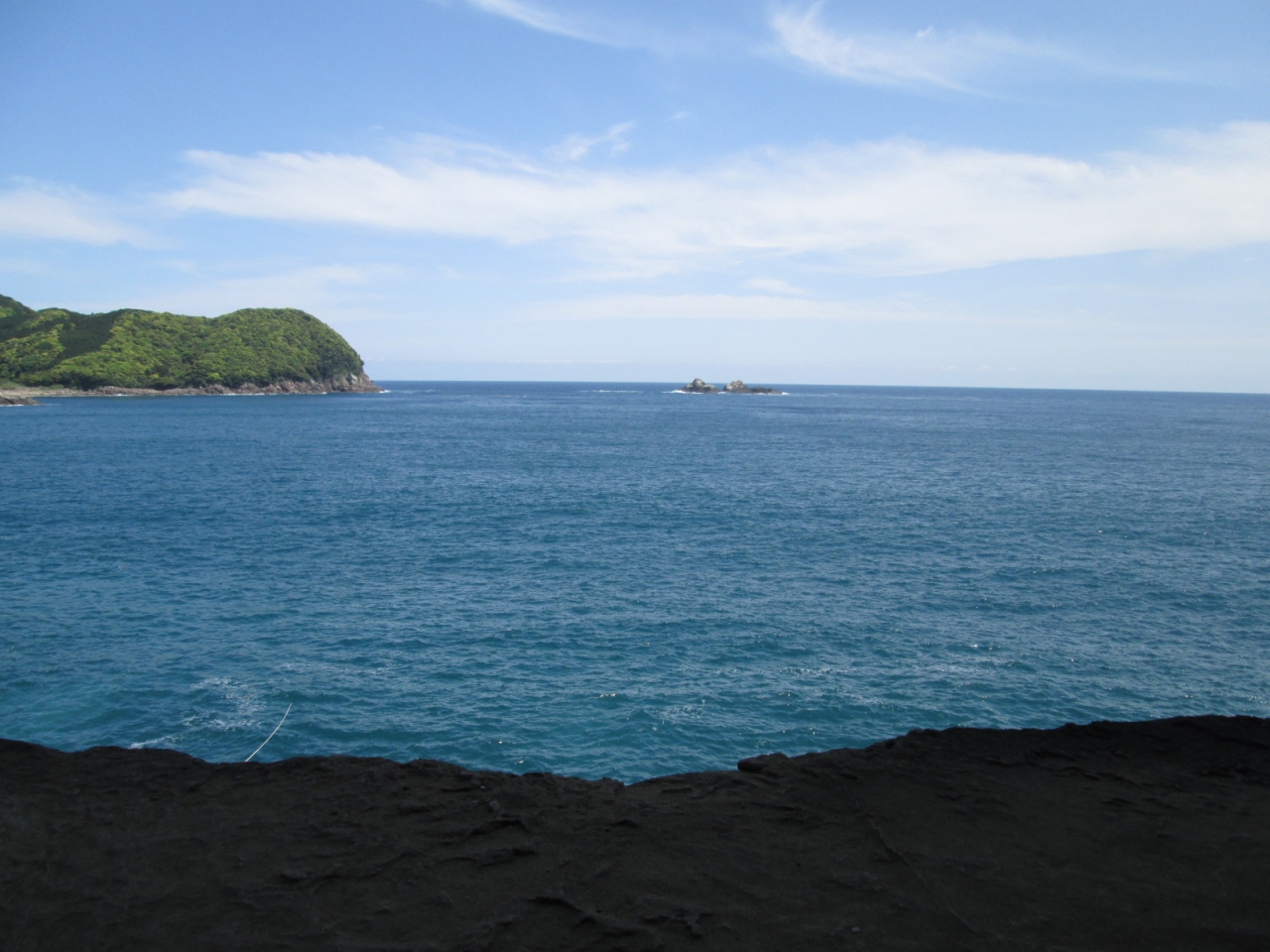 鬼ヶ城にある千畳敷。千畳敷というだけあって、鬼ヶ城では一番広い平らな岩の畳だと思います。2階建てになっていて、どちらからも海の見晴が良く、記念撮影にはいい場所。2階部分は浅い洞窟のようになっていて、陽が当たりにくく、逆光気味ですので、フラッシュを焚かなければ、海を背景にした、シルエット風の記念撮影が期待できそうですね。(水族館の水槽を背景にした記念撮影みたいな)いろんなポーズで撮影してみるとおもしろいかも。