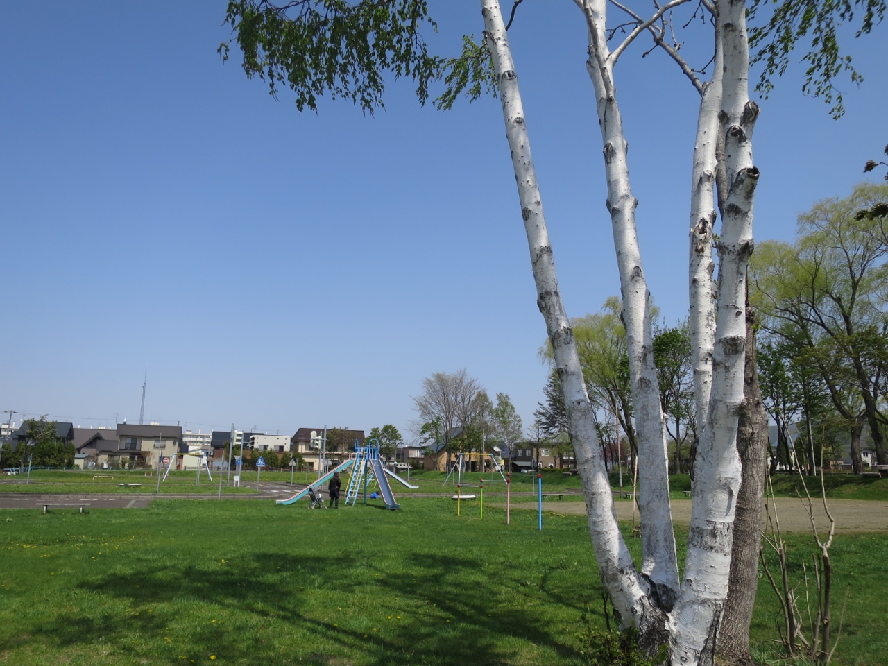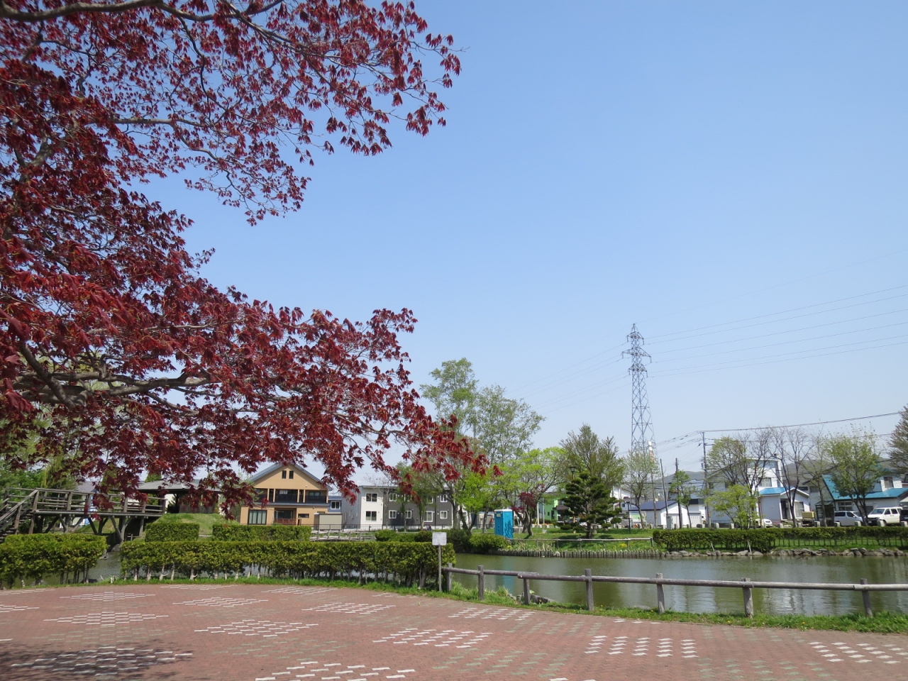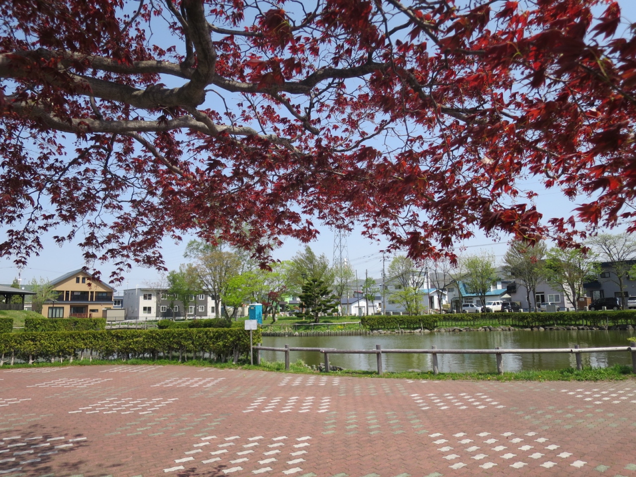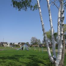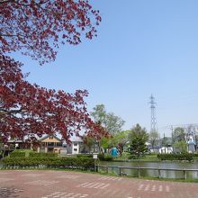 美唄駅の東側、住宅地の中にあって、ボート遊びや子供が自転車の交通が学べる公園です。