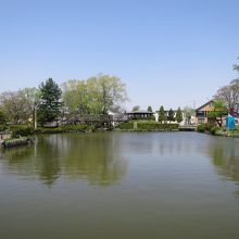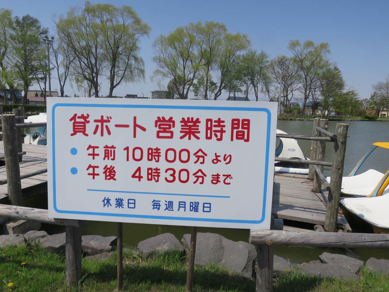 公園内には大きな池があって、4月29日~10月10日の10時~16時30分(月曜休み)は貸ボートができるようなのですが、訪れたときは事務所もひっそりとしていました。