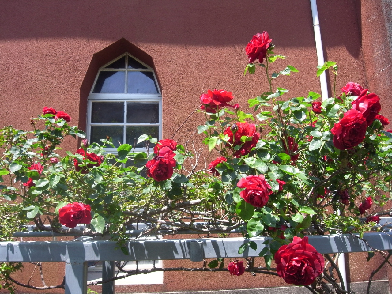 花壇や教会窓のステンドグラスがノスタルジックで、まるで外国にいるような気分でした。