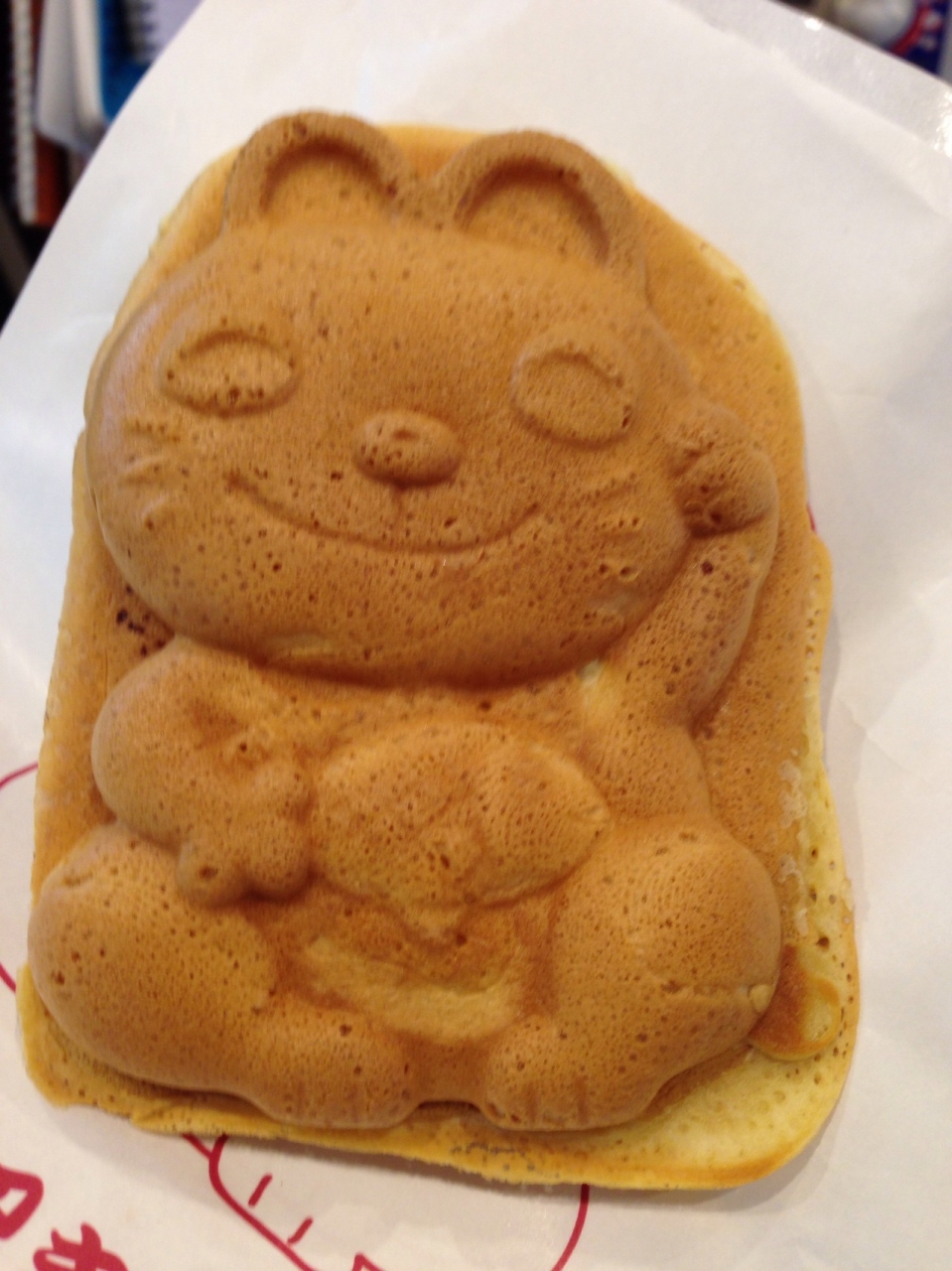 招き猫の形のたい焼き。裏は後ろ姿を予想していましたが、正面でした。 クリームチーズピザなる珍しい味も有。