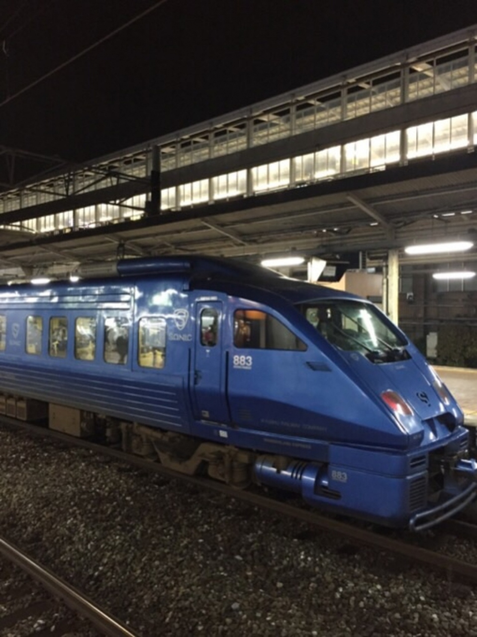 沿線の海をイメージした全面ブルーメタリックの外観が印象的です。