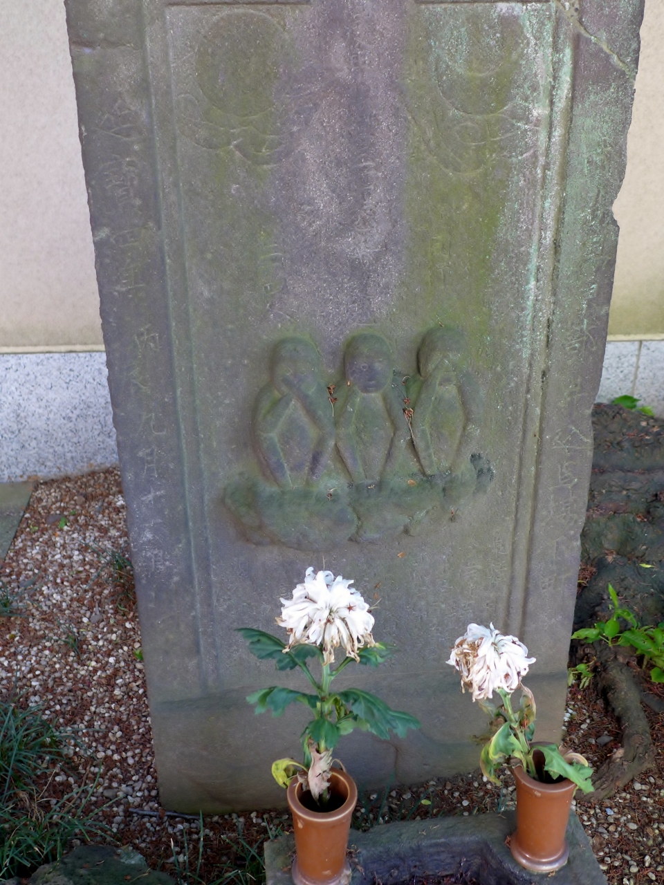 三猿が彫られた板碑型の庚申塔や本堂の前には手入れが行き届いた庭もあって、静かなお寺でした。