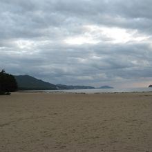 天橋立には駅から近い文殊側と、観光船乗り場・一の宮桟橋に近い府中の二箇所の海水浴場があります。文殊側の海水浴場は松並木を背後に宮津湾を一望できる200mほどの広いビーチがあります。訪れたときには、台風が去った後で水も濁り泳いでいる人もいませんでしたが、駅からも徒歩圏内だしなかなかよいビーチだと思いました。
