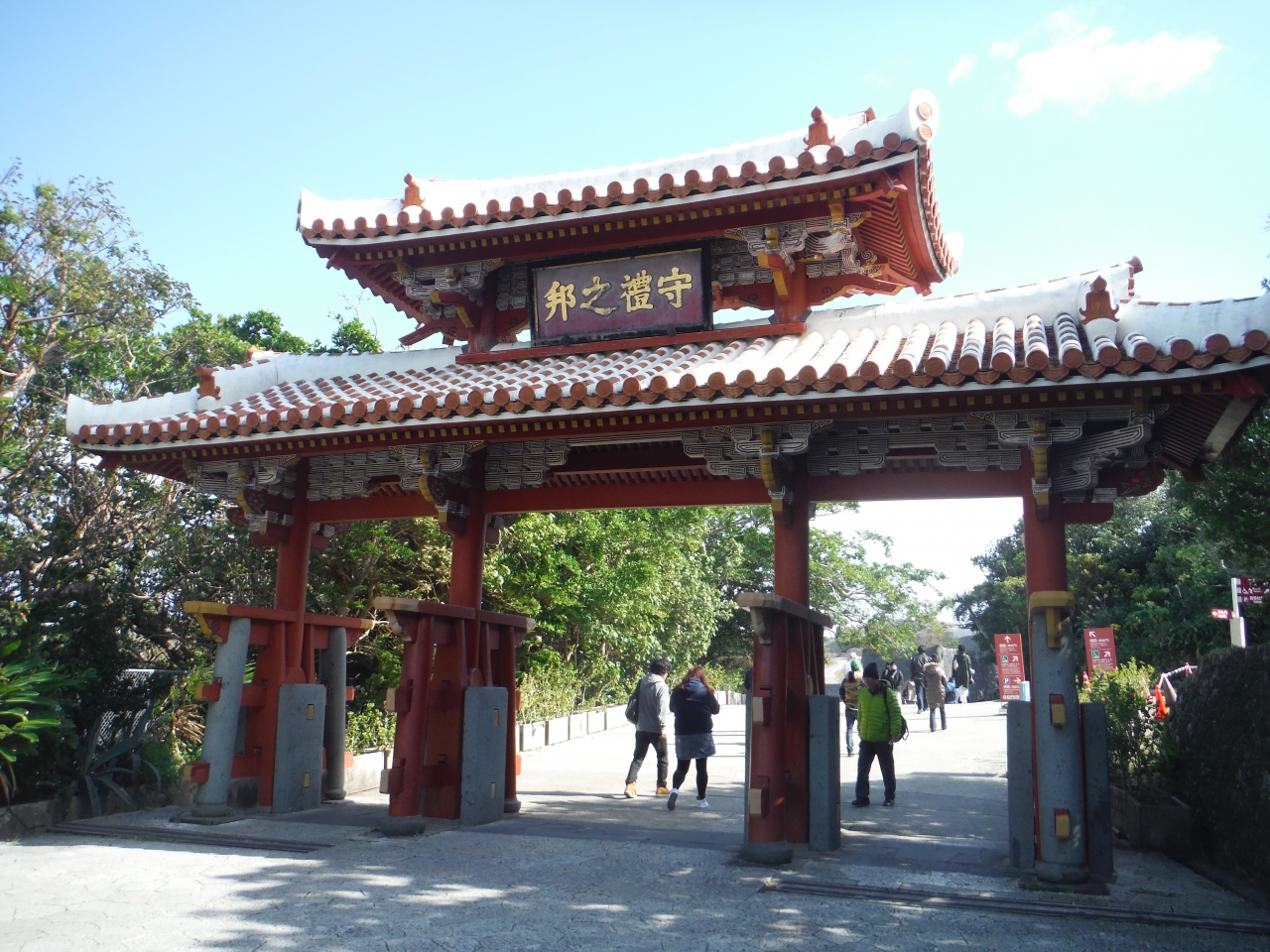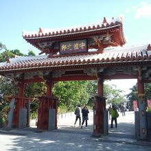 赤い瓦屋根が色が鮮やかで、門構えが非常に雄大です。