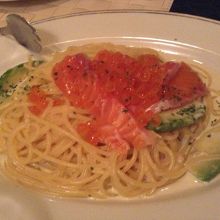 サーモン、イクラ、アボガドのパスタは個人的には大ヒットで、クリームパスタのクリーム加減も丁度良く、くどくならずにスルッと食べられます。大変美味しかったです。
