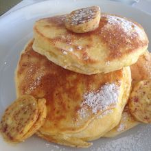 ビーチをお散歩して戻り、おやつがてらにリコッタパンケーキとポテトを注文。