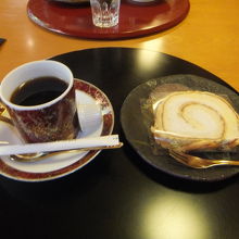 コーヒーと、お醤油ロールケーキのセットをいただきました。