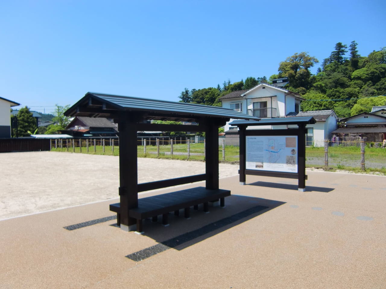 少し離れた場所に説明板とベンチが設置されていました。