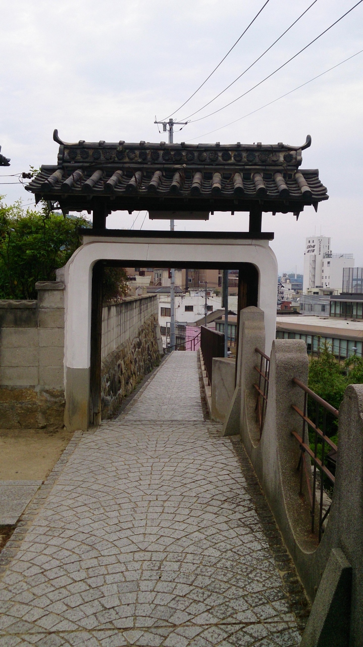 境内に横から出入りする門がは、非常に特徴的な門でゲート部分は白い洋風の雰囲気があるもので、その上の屋根は従来の瓦屋根の和風スタイルですが密着して一体化しているのではなく独立した屋根がゲート部分にのっかている、非常に珍しい興味深いつくりで、存在感がたっぷりです。メインの山門はいわゆる従来の建築スタイルの山門で時間の経過で黒くなった素材の木が歴史を感じさせる状態で、良い風合いを出しています