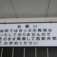 切符を買うのも、ICカードを読み込ませるのも、精算するのも全て西新井駅で行います。なので大師前駅に改札は在りません。