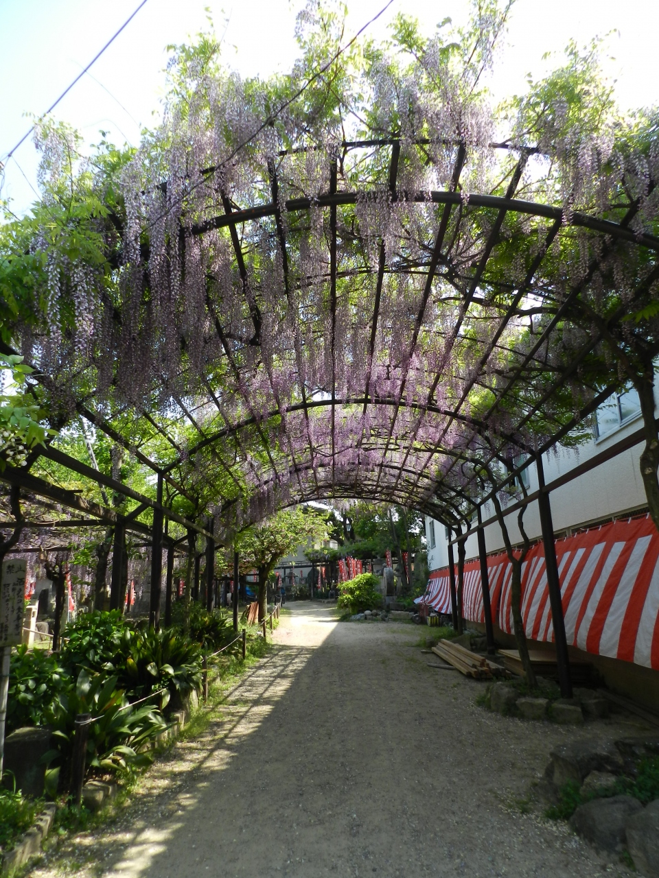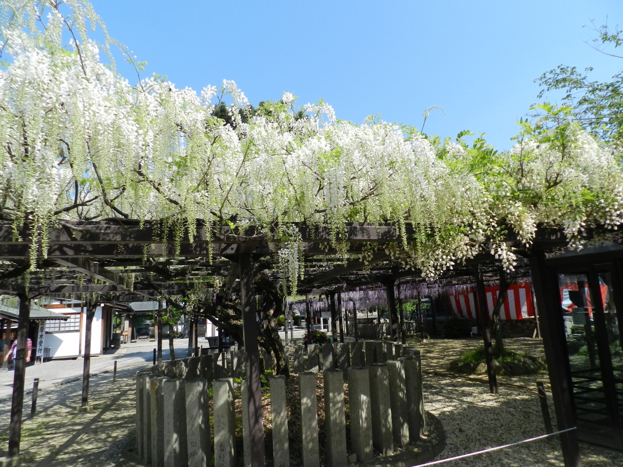 私が訪れたのは2015年4月25日。既に見頃を迎えていて、境内あちこちにある藤棚はとても見応えがありました!