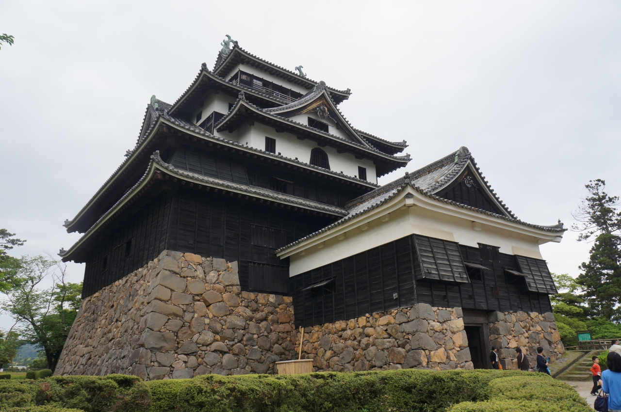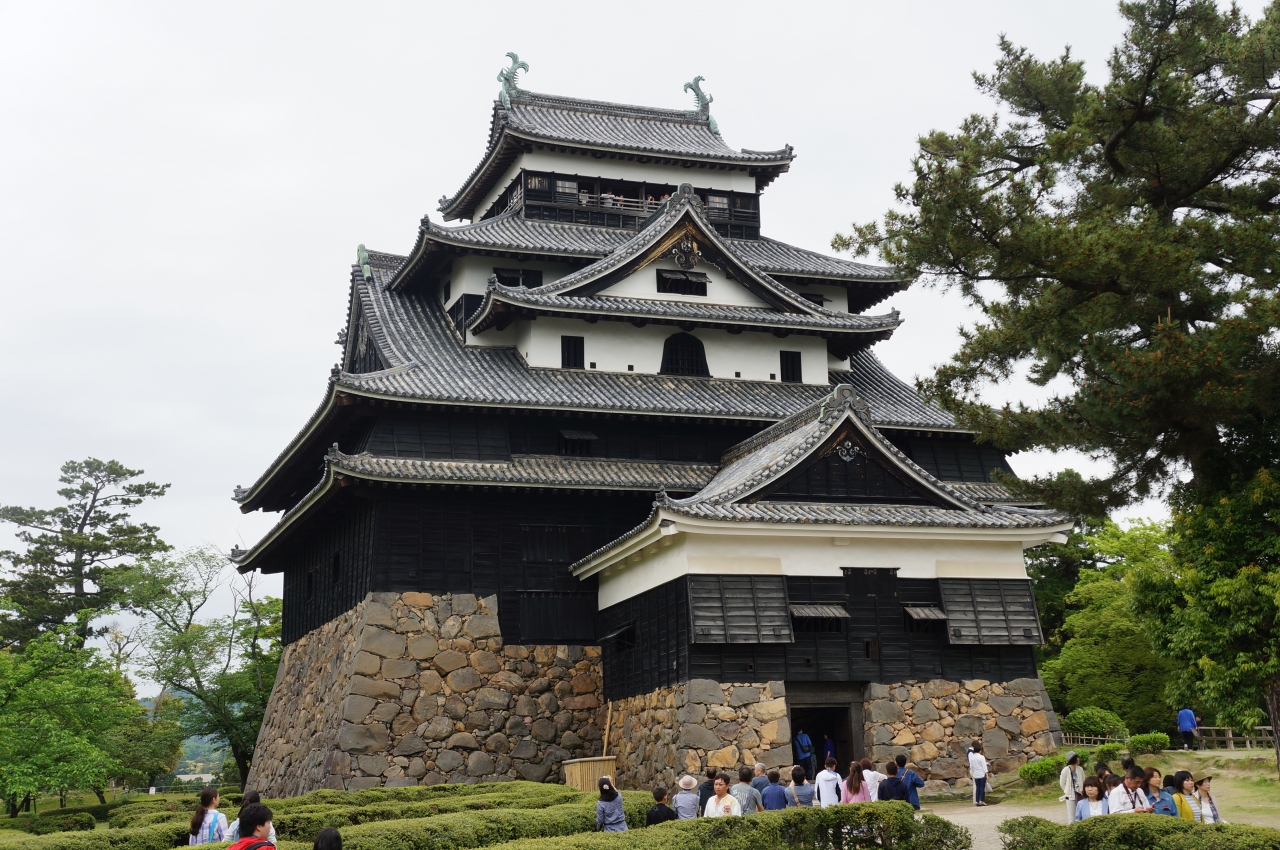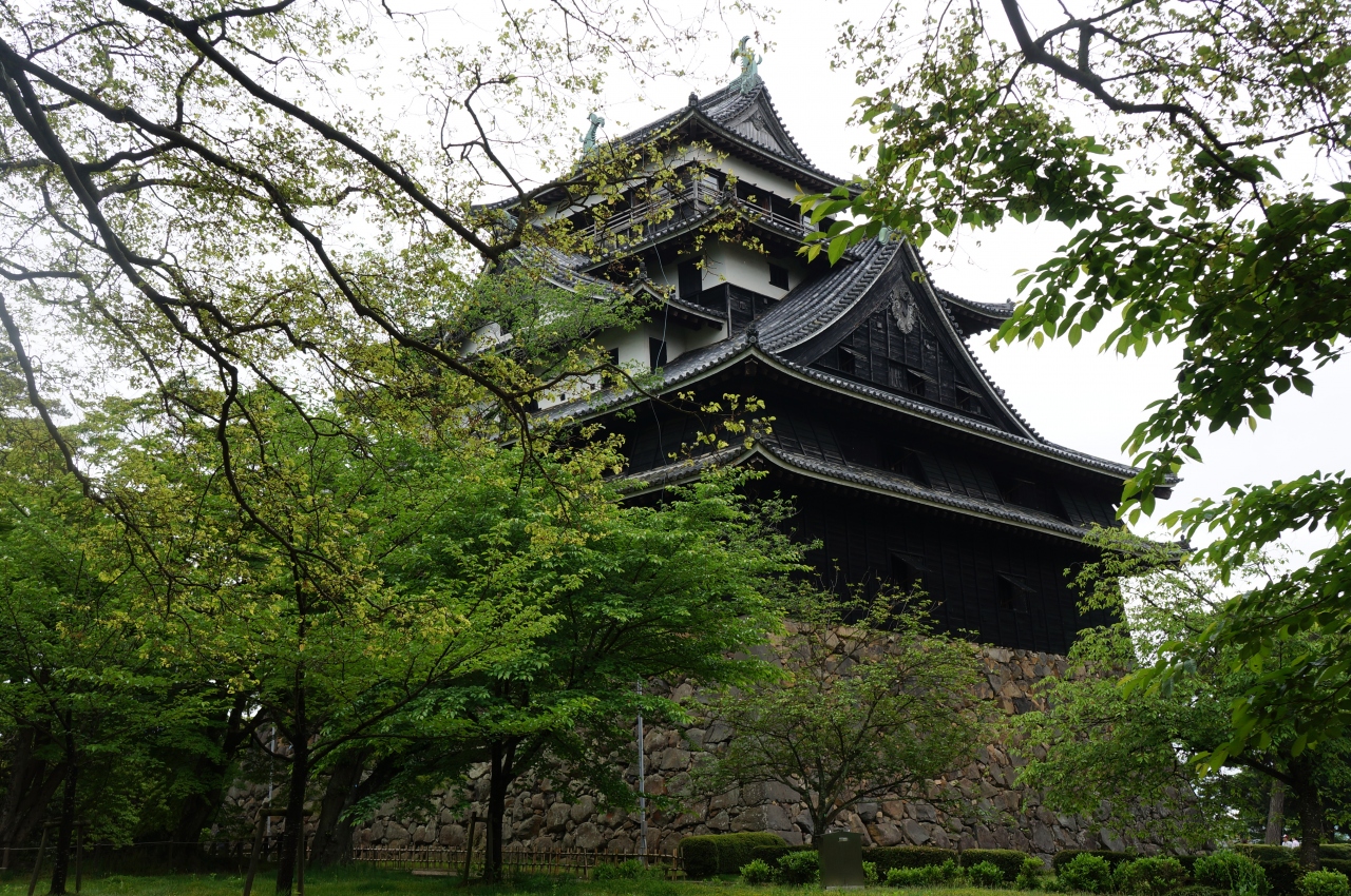 現存12天守の1つ松江城は、別名「千鳥城」とも呼ばれる城の外壁は大部分が黒塗りの下見板張りで白壁とのコントラストが美しい。