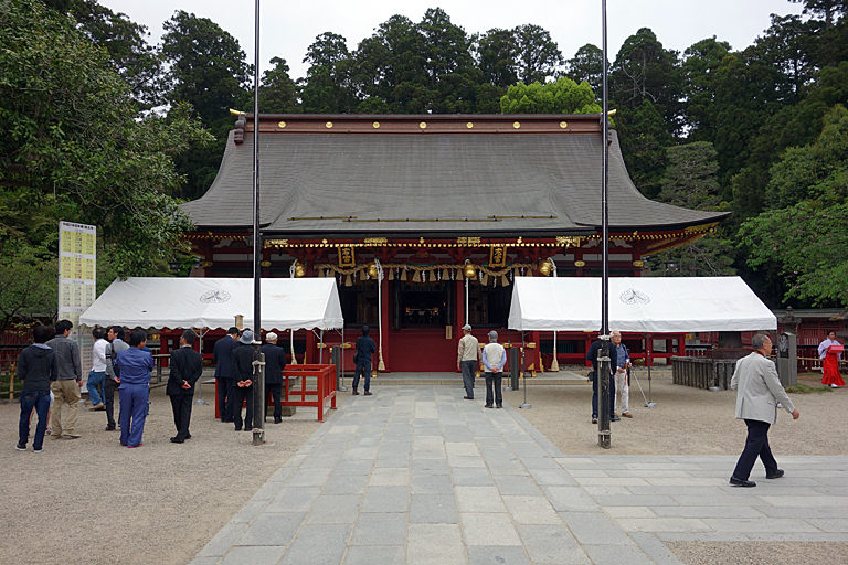 塩竈のランドマーク的な存在の神社です。正面から登っていくと、すさまじい階段を登ることになります。脚に自信のない方は裏の駐車場に車を駐めていくと、登りの階段は少しだけで済みます。