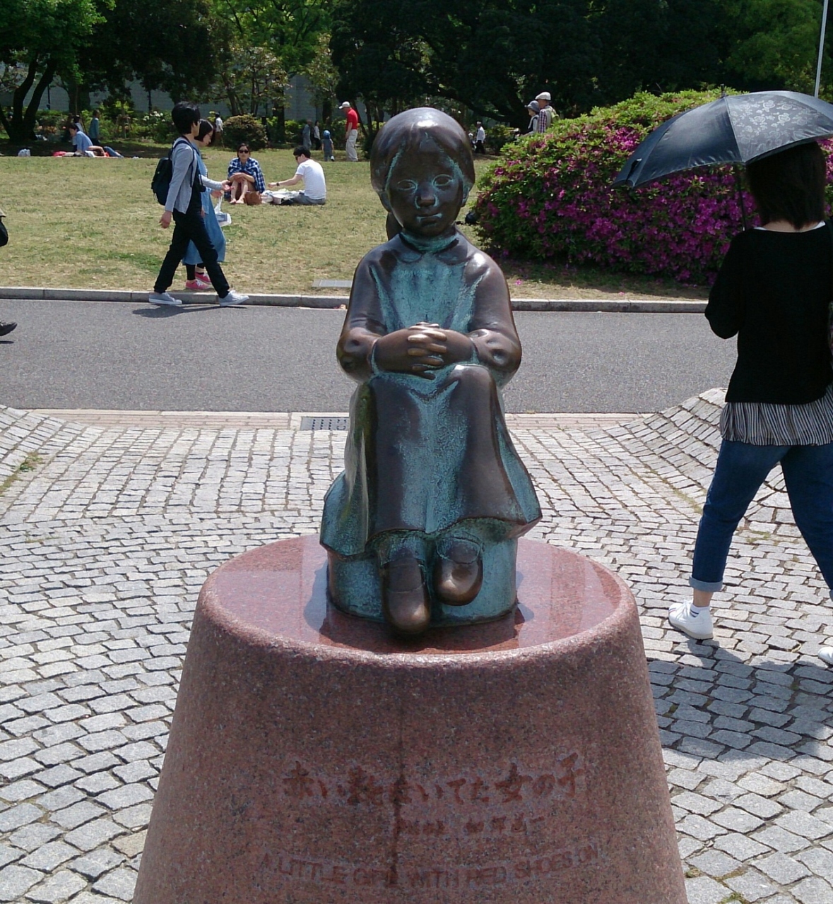 女の子像は海に向かっていて、まるで海を眺めているようでした。