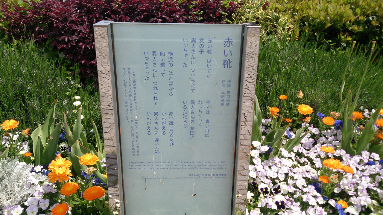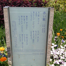 童謡の♪赤い靴~履~いてた女の子~♪という曲がモチーフで、童謡の歌詞も像の近くにありました。