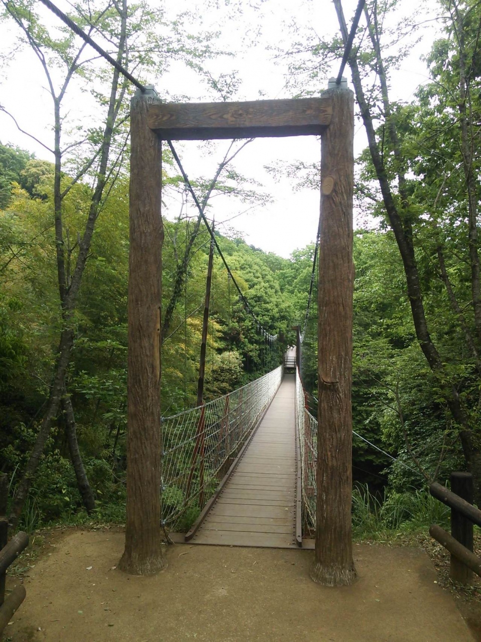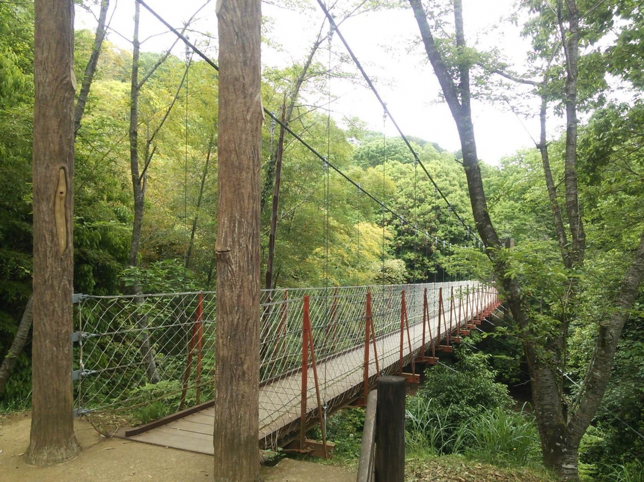 起伏のある山の傾斜をそのまま利用している公園で、清流の流れ出る小川や岩場、吊り橋がありました。