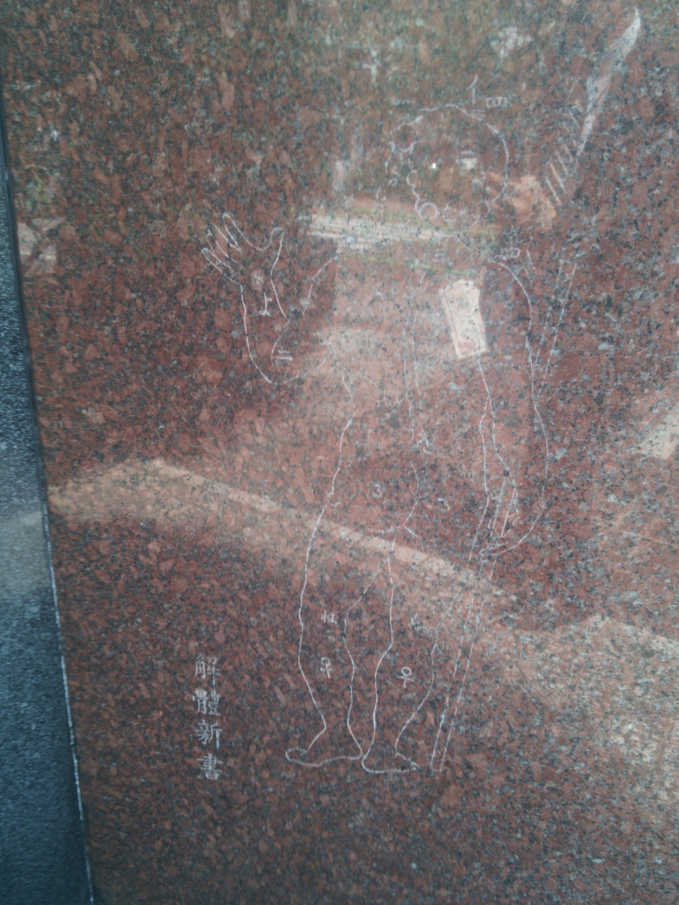 聖路加病院前交差点の先が三叉路のなっており、交差点の中に不思議な三角州のような場所に日本近代事始として「蘭学事始の地」「慶應義塾発祥の地」の石碑が建っています。