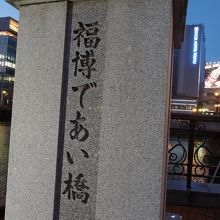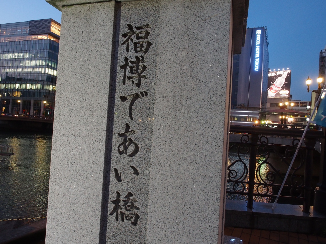 車は通れないようになっていて、橋のスペースもかなり広くとられているので、橋のかかっている那珂川に移る博多の夜の明かりを眺めたり、水上バスがゆくのを見守ったりしてのんびり川風に吹かれることができます。