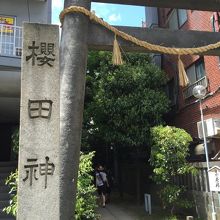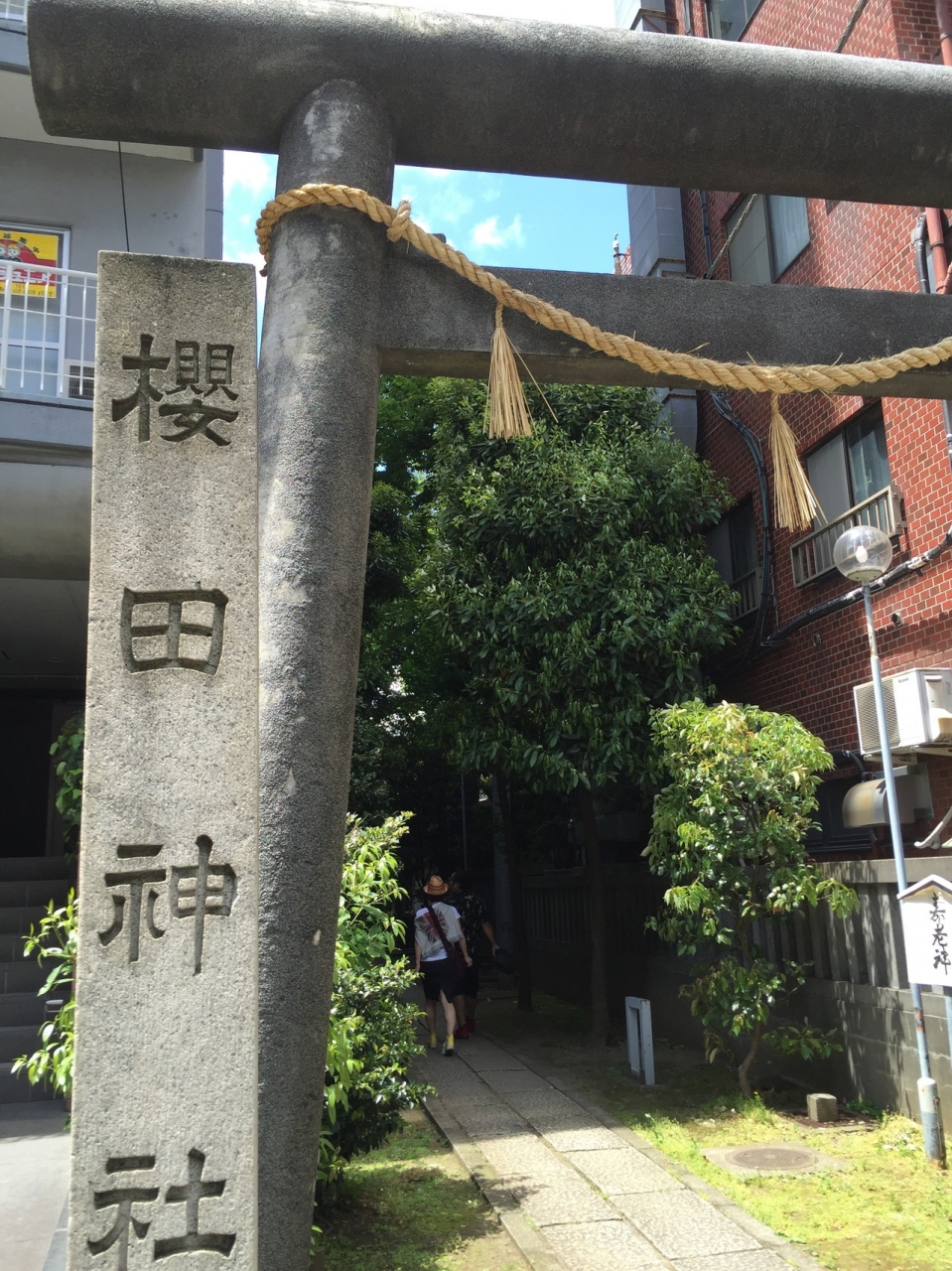 六本木6丁目の交差点をけやき坂テラス方面に入って、右側にあります。ビルに囲まれて鳥居と参道が見えます。奥に入って階段を上り、本殿があります。源頼朝の時代からあった古い神社で、1600年代に霞ヶ関から移転してきたそうです。