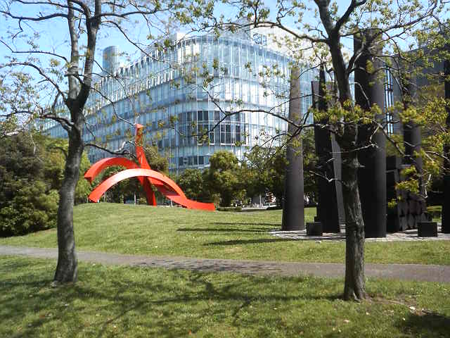 園内には芸術的なオブジェや花壇があり、周囲の近代的なビルや海景色を見ながら心地よく散歩やジョギングを楽しめます。