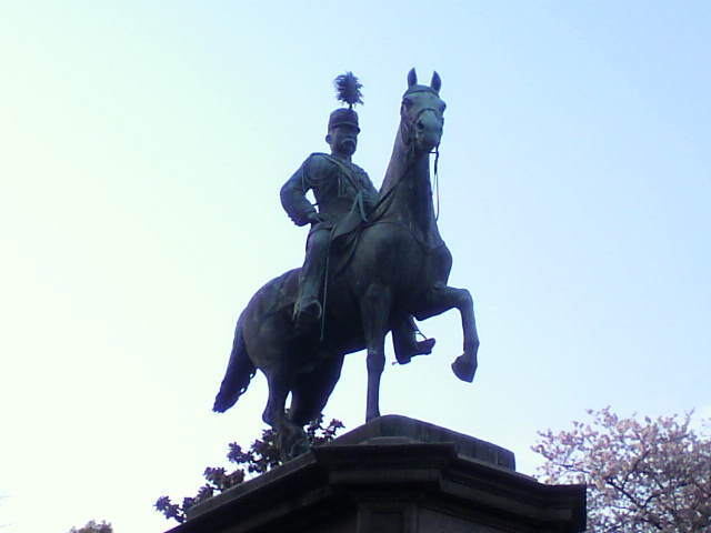 明治維新の功労者で、戊辰戦争をはじめ、佐賀の乱、西南戦争などの内乱の鎮圧に貢献された小松宮彰仁親王(仁和寺宮純仁法親王)の騎馬像です。