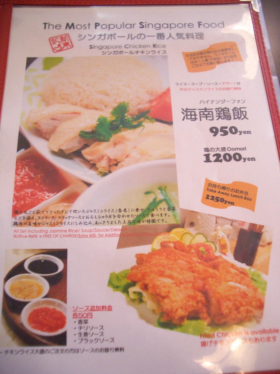 美味しい海南鶏飯でお腹一杯(エビス新東記)