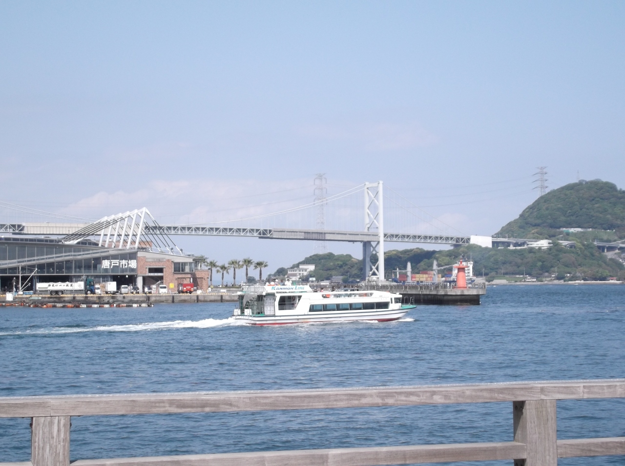 橋の上を車で通ると、本州と九州、西には巌流島、東には満珠島・干珠島、